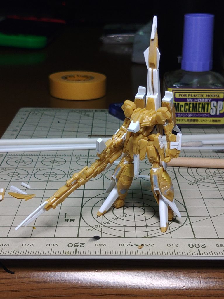 やっと脚部がつま先までつながったので、仮組みをして全体のプロポーションを確認しました。