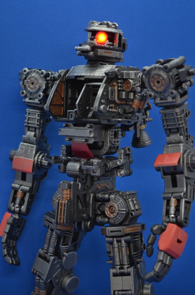 ABSが多く使われているので、タミヤの”ナイロン・PP用プライマー(透明)”を全身に拭いてから、焼鉄色→シルバードライブラシの金属表現です。所々カッパーやブルーゴールドでアクセントをつけています。
