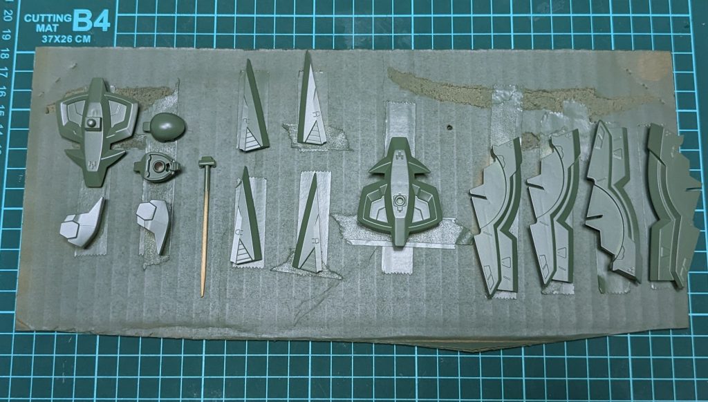 久しぶりのストーリー投稿。ちょいちょい進めていたジオニックソードがようやく色の塗装に入れました。去年増やしてしまったお手付きの中から「2023最新作」の〆切りに間に合うボリュームのものを選んだはずだったのに…(汗)