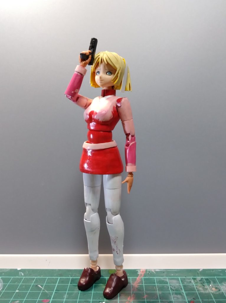 ブーツはそれほど分厚さは必要ないので、上の方は細切りにしたプラバンを脛からふくらはぎに一週するように接着し段差を埋めるだけでもイケますね。エポパテを細く伸ばして一周貼るでも良しです。伝わりますかね。