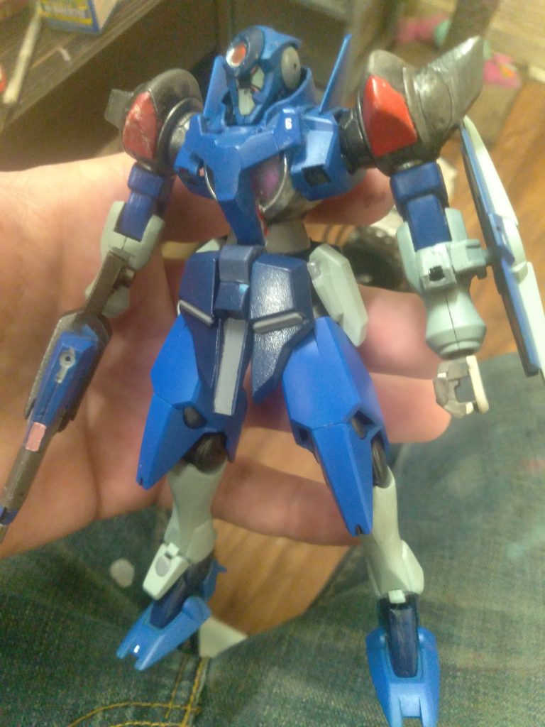 After over a year of not being painted, my custom GN-X-603/e Enhanced GNX is on its way to being done. From my 00 story, it’s a machine that is tailored to enhanced pilots. Individuals that have been modified by surgery and genetic treatment to be powerful Mobile suit pilots. There are 10 units in total. It is powered by a pseudo GN drive. Being from the 2nd generation, it has less flaws than the 1st generation. Able to battle nearly on par with the Andromeda gundams, these machines cause Celestial Being a lot of trouble. As for armaments, it’s equipped with a GN beam rifle that has the ability to be converted to a GN long beam rifle by swapping out the barrel before sortie. It also has 2 beam sabers concealed in its upper thigh. For defense, it has a GN shield with deployable defense rod. For extra protection, the shield can generate a small gn field. Optional equipment consists of N-GN bazooka, GN buster sword, and GN launcher. (The last one I’m still working on)