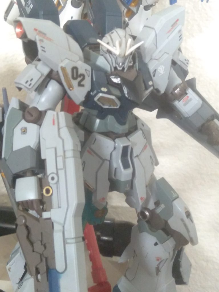 I discovered the arm parts were actually done in a medium gray color on the mobile suit so I repainted them. It’s a near perfect match now