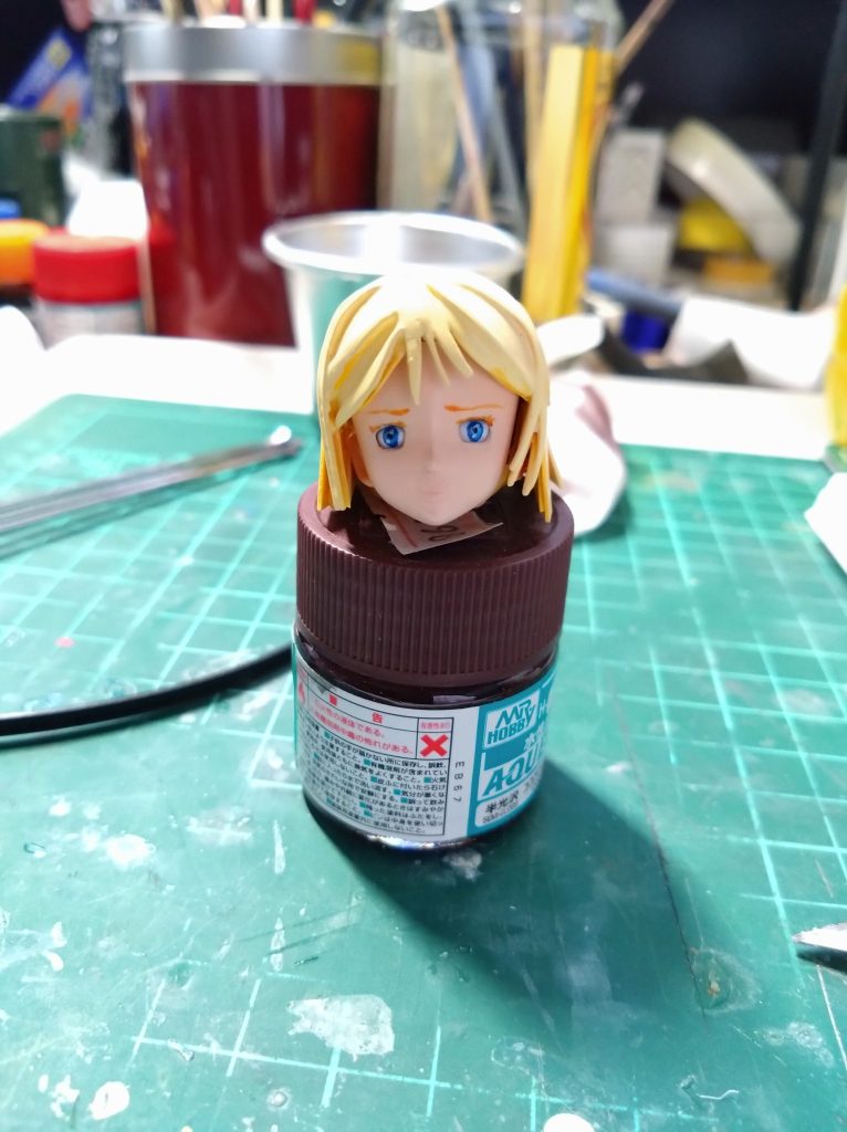 以前の投稿の塗装落として少しランナー盛りが乾いたようでヤスってからの瞳の描き込みしました。