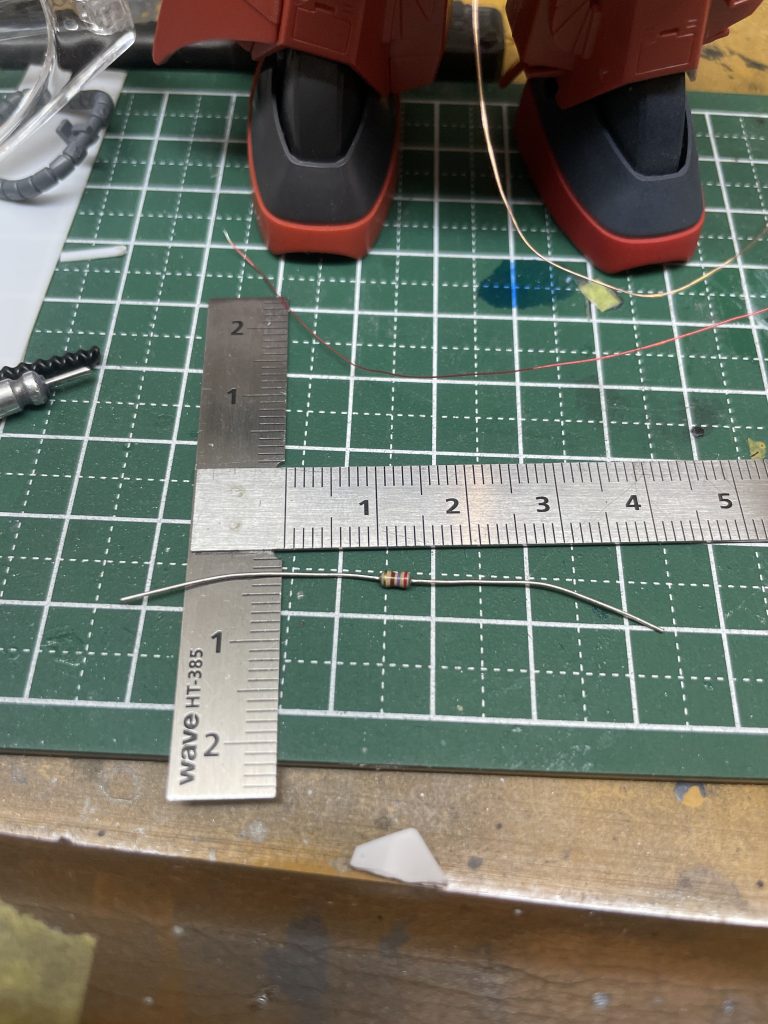 ガンプラで使うには明るすぎるので、もっと大きな抵抗のものをつけます!