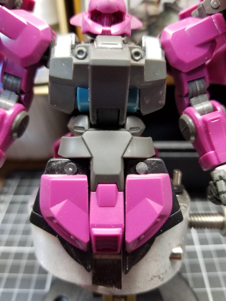 今回は太もも延長に伴い、フロントアーマーの拡大を行いました。ジャンクからテキトーなものをチョイスして、キットのものを貼り付けました。ボールジョイントは真鍮線で固定しました。