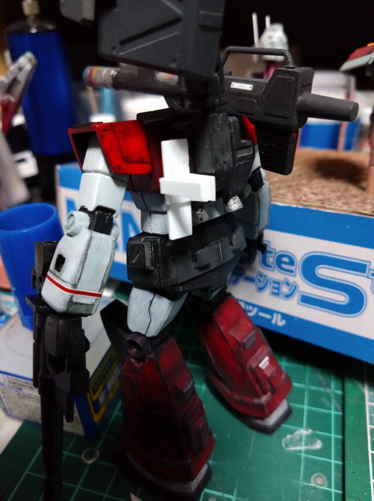 ジムキャノンの機体(特に赤い部分)の雰囲気が素晴らしいですね😊完成して全体像を見るのが楽しみです。