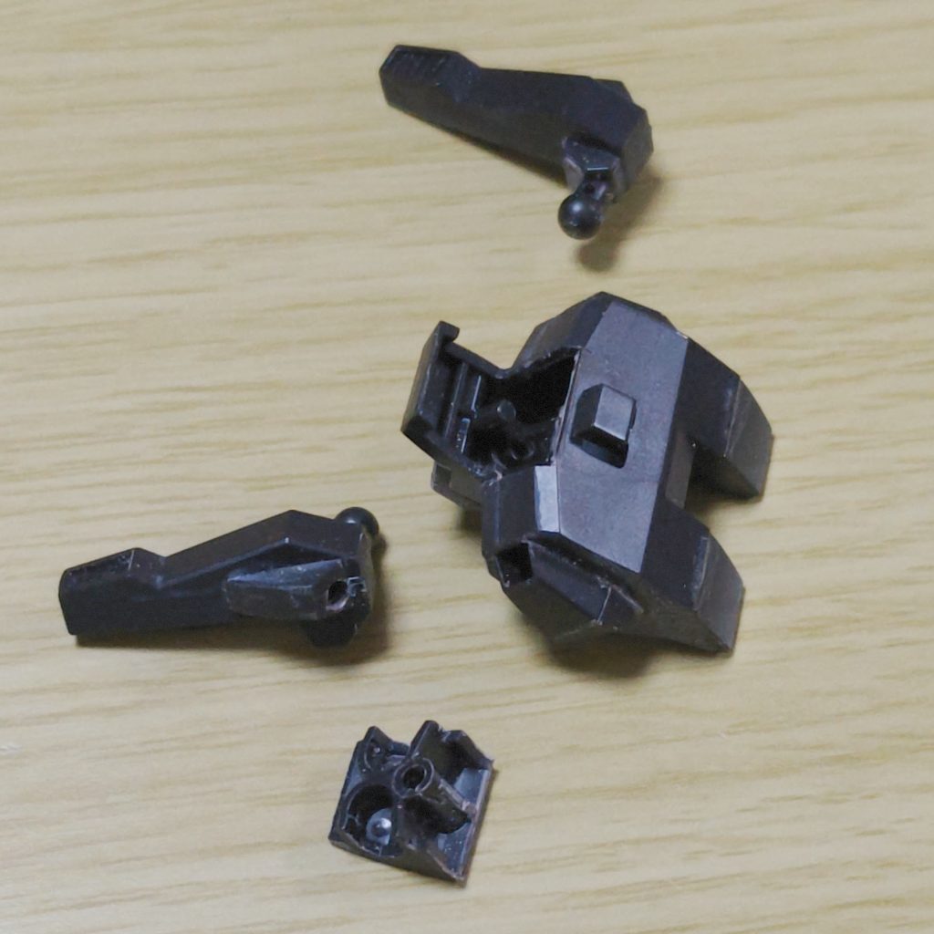(写真1枚目)バックパックは側面に合わせ目が出るのですが、これを普通に接着するとサーベルラックの後ハメができません。前回はボールジョイント部分を削って、無理矢理押し込んだのですが、失敗すると合わせめ目が割れてしまうので、今回は違う方法を採りました。基部の箇所を切り取って、ここだけ後からフタをするようにします。残る合わせめ目はディテールを追加してごまかしましょうか。