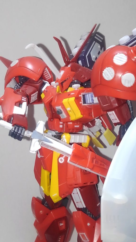 カラーリングは全塗装とか思ってましたが、それほどプラバン貼って無いので、可能な限り成形色活かしで行こうかなと思います。朱色、あずき、黄色で元のカラーリングを踏襲します。盾のカラーリングだけは手強そうですね。この透けるプラで同じ色が出せるかな?と不安がちょっとあります。