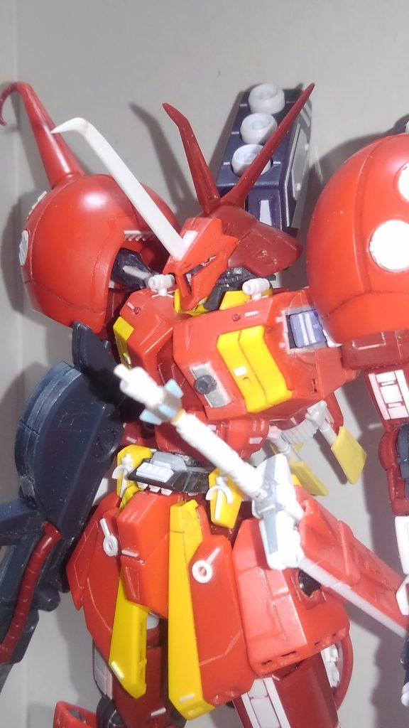 デフォルトは銃剣が付いていたのでビームトマホークの先っぽを付けたりしてます。ちょっと良くなったかな。
