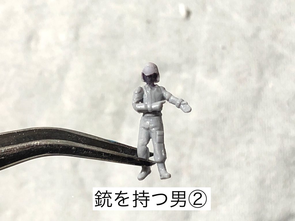 皆様、日々の模活、お疲れ様です。近況報告になります。ずっとビルダーズパーツをベースに、1/144フィギュアを作ってました。しかし切って、貼って、削って、埋めて、また削って、掘って、地味な作業が続きますorz またジオンのヘルメットの再現が難しいです。【作戦1】プラ板を頭に巻きつけて加工>失敗。【作戦2】マスキングテープ+マークフィッター>失敗。パテは最終手段として、【作戦3】丸棒をドリルで孔開けて、ニッパーとカッターで切り出して被せてみたところ、襟足以外はぼちぼちいけそうでしたので、今回はこの作戦3で作っています(銃を持つ男②)