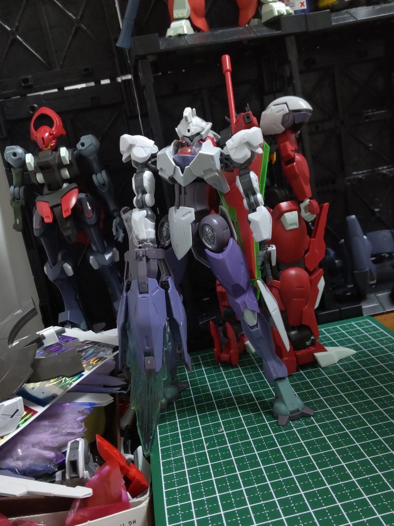 なんだかんだ5体くらい同時につくっちゃってます。すべて水星キットベースなので放送内容によってモチベが変わりがちです。ミカエリスは頭の形状考えて作るのがメンドそうなくらいなので割とスムーズに作れる、はず。