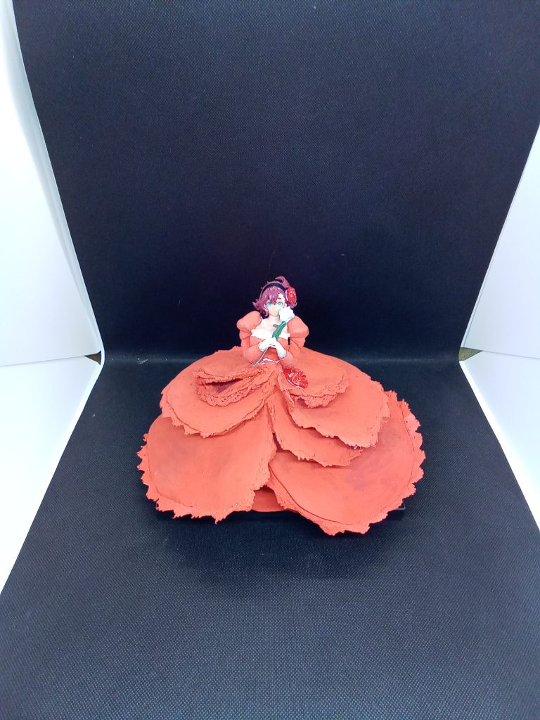 うわ~💗『スレッタちゃん』素敵です😍 薔薇を彷彿させるドレスがとても似合う🤗手に持つお花の白さが全体像を引き立てる🤔頭と腰の赤い花が『スレッタちゃん』の気概を表すようで、惚れ惚れする作品です。😍💕