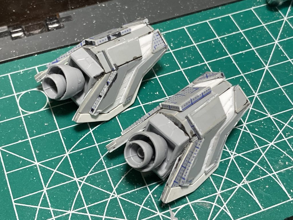 手作りサイコフレームとかほとんど作例を見ないのでどうやればいいの全く分からなかったのですが、やってみると掘るだけで簡単にそれっぽくなったので思ったほど苦戦しませんでした。