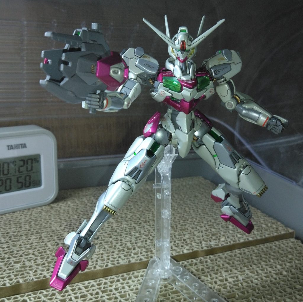 本体の塗装がだいたい終わりました まあ今回は武装類やバックパックが本体である可能性もありますが(^_^;) ピンクはキャンディ塗装でホワイトはガンダムホワイトと青味を入れたグレーで塗り分けてムーンストーンホワイトでパール散らしてますね 前回チラッと触れましたが肩のピンクのアーマーをビットとして切り離し可能にしてまして これをライフルに取り付けて3連速射モードという事で 通常のビットライフルが高出力モードとするなら 前回紹介したのがギガビットライフルモードで艦隊戦モードの超出力 今回の速射モード、こちらのモードの方が乱戦では汎用性は高そうです さて3枚目のライフルを見てください地味な改修行っております このレシーバーライフルは左右に4つ 計8つの溝があるんですが、この溝全てにフィン状のスラスターを埋め込みました これで以前仮説として言っていたルブリスはライフルそのものをビットとして飛ばせるんじゃないか?という説を実現? なお、2枚目のバックショットがこの作品の改修コンセプトをよく表しているので意外にお気に入り あんまり見えてないけど足の裏は自信作です!