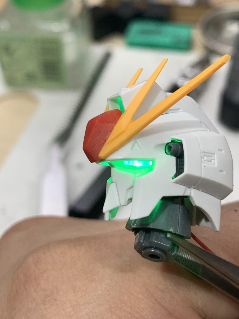 先日のライフルに引き続き頭にもLEDを仕込んでいきます。