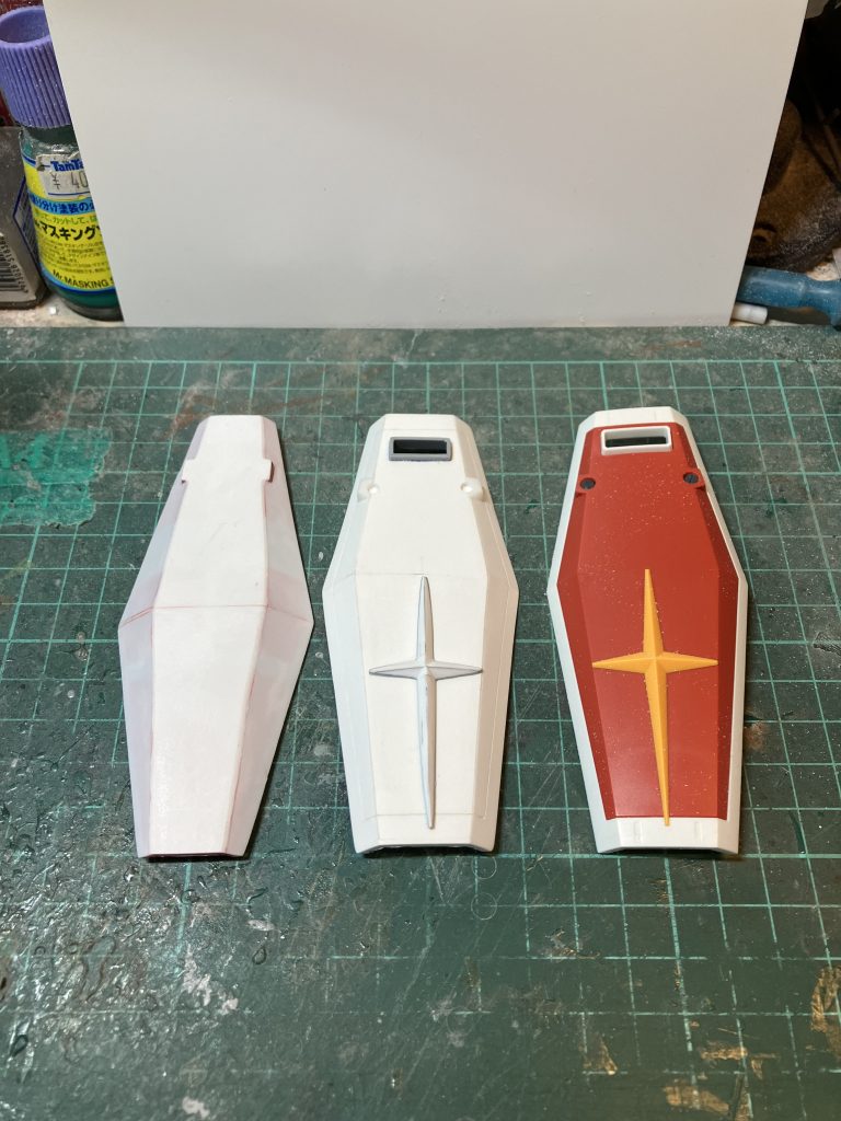 キットのシールドをベースに20ミリ延長して作ったのはいいのですが、キットとプラ板の厚みが違うから裏側がガタガタになっていて処理をどうするか考え、一から作り直す事にしました💦💦
