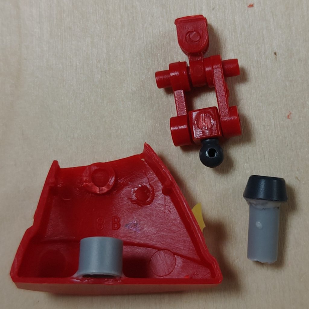 (写真2枚目)元と同じ位置に関節を持ってくることができました。結局パイプでブロックを接続することになったので、ボールジョイントでなくてもよかった気もしますが、横軸を切り飛ばしているのでその動きを補う役目をしています。