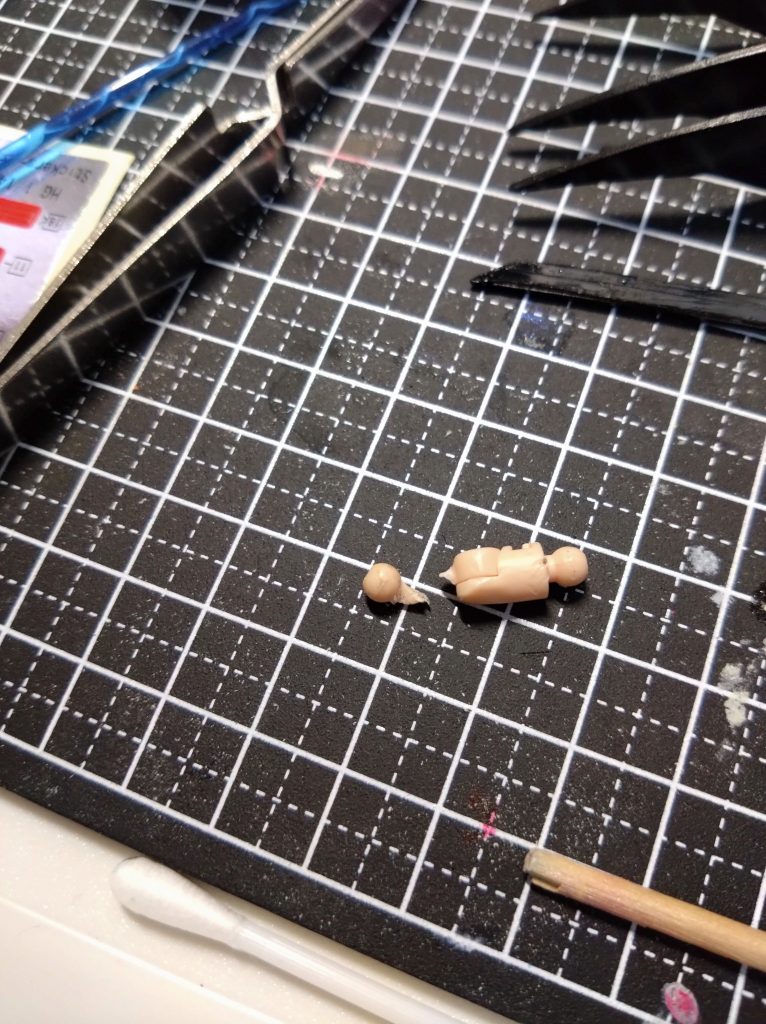 メイン写真なんですがミオリネさんの首パーツを胴体仮合わせして、外そうと思い…?ちよっと硬いな?ってグッとやったらちぎれました😨