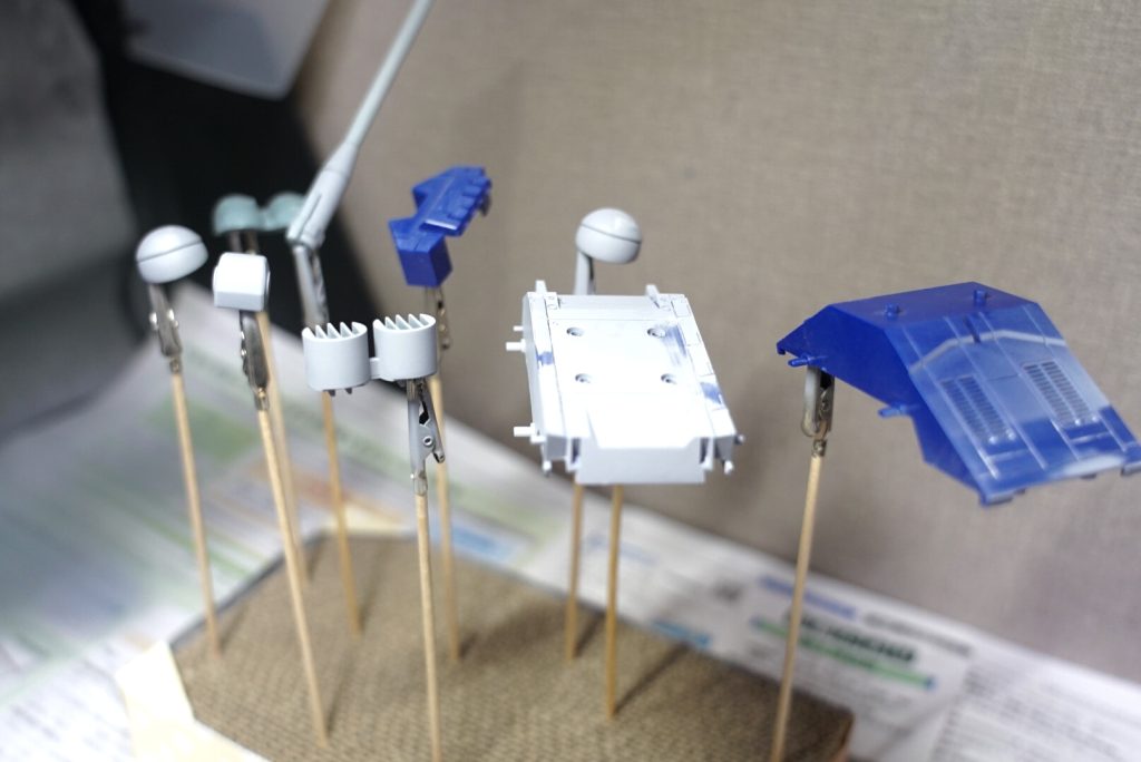 前回の制作から3ヶ月も経ってしまいました、、今回は全体にゲート、表面、ヒケ、合わせ目の処理をしたので無事に出来ているか缶スプレーのサフ(1000)でチェック。