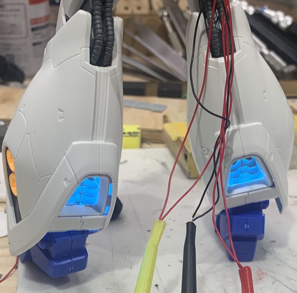 両脚の配線と電飾作業が終わりました。