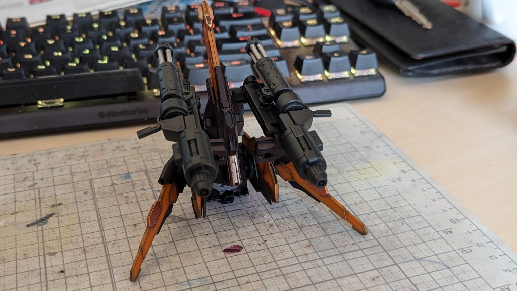 そしてルブリスのバックパック自体を上下反転し、ボールジョイントで繋がってる部分を組み替え、背中に搭載できるライフルも固定してスラスターとして固定装備にするように組み換え。