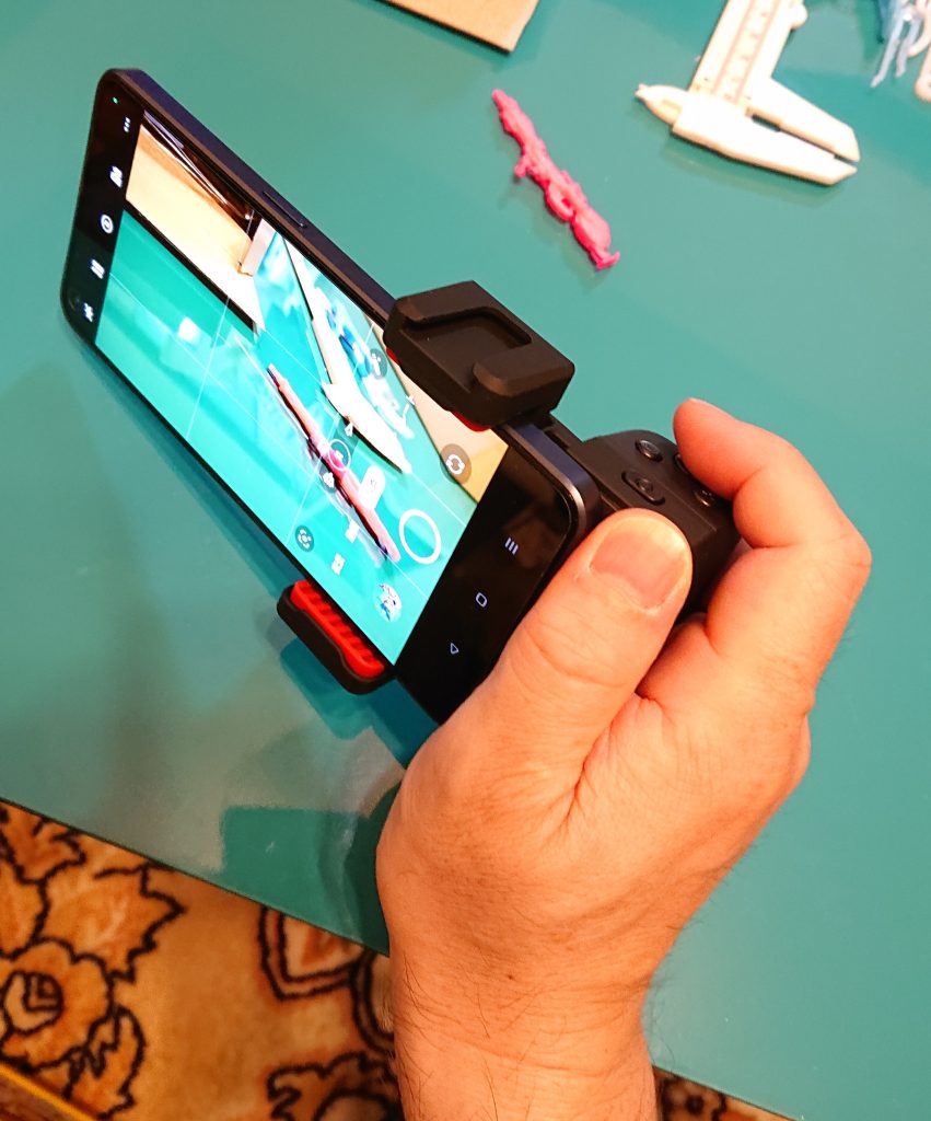 ちょっとスマホの取り付け位置を左にずらせば、握ったときの親指の置き場も確保できて、グーです。