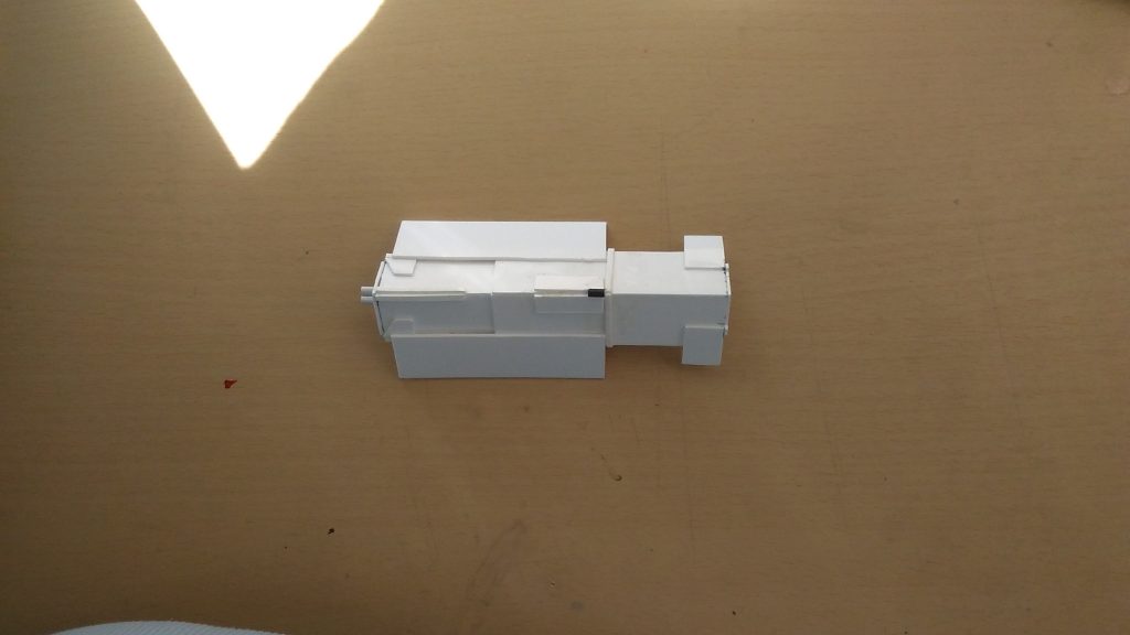 今回はシールドを制作しました。ウィングガンダムのシールドに被さるようにしてみました。が、ここで問題発生!制作したシールドが大きすぎてウィングガンダムの方のシールドを腕に接続するやつがプラプラに!シールドが下向きなのはこれが理由です。