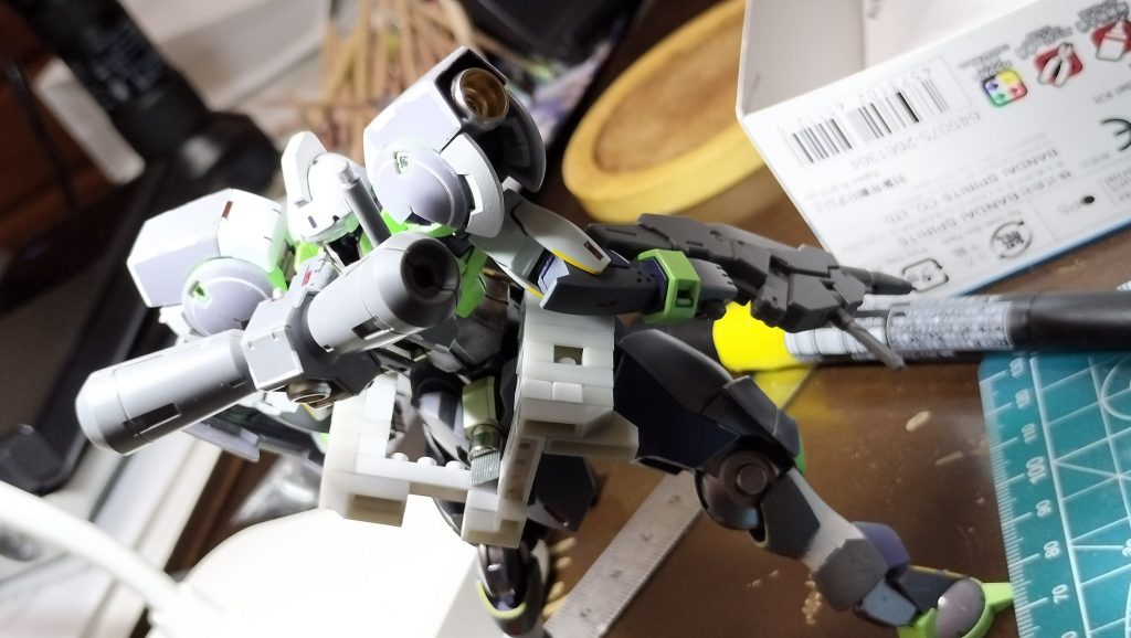 お手軽にいじりたいのと、説明書をなぞるだけの制作では嫌なアマノジャク気質のハザマで、部分塗装のトンデモカラーリングになりました。