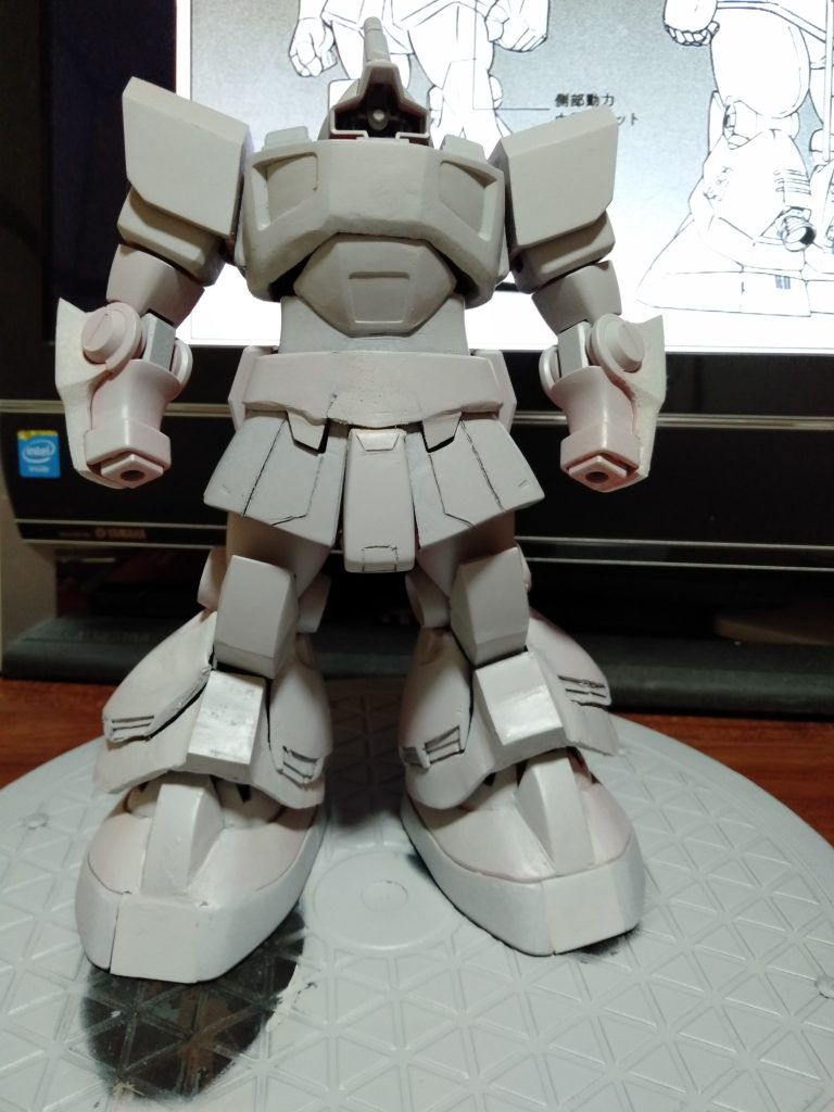 MGリックドム改造トロピカルテストタイプの進行状況です、先ほど確認用に捨てサフ吹いたんですけど・・・荒すぎる作業が💦、削り残しや処理の甘さが露呈。それと元々頭部の位置を少し上げて制作してたつもりだったんですけど、低かったので今書き込みながら作業してます(笑)まぁ全体的にはこのまま少しやり直すトコはあるけれど、全体的にはOKかな?って想ってます。 外は台風の影響で流石の大阪も大雨なんで明日も心配ですけど、まぁ京都の結界のおかげでまた、逸れたので道路の路面状況は悪いですけど問題なさそうかも?www