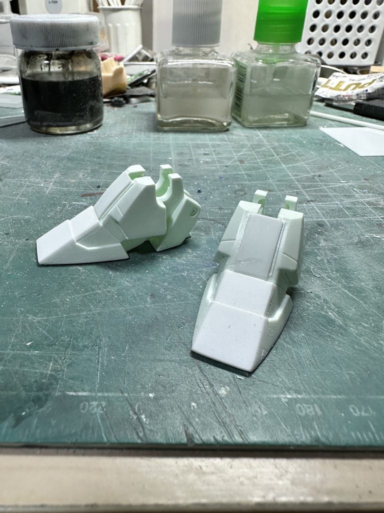 細いつま先のZZですが、超重量級の躯体を支えるのは無理でしょう、と6mm幅増し。ヒール部分には30MMから流用したパーツで後方接地面積を稼ぎました。