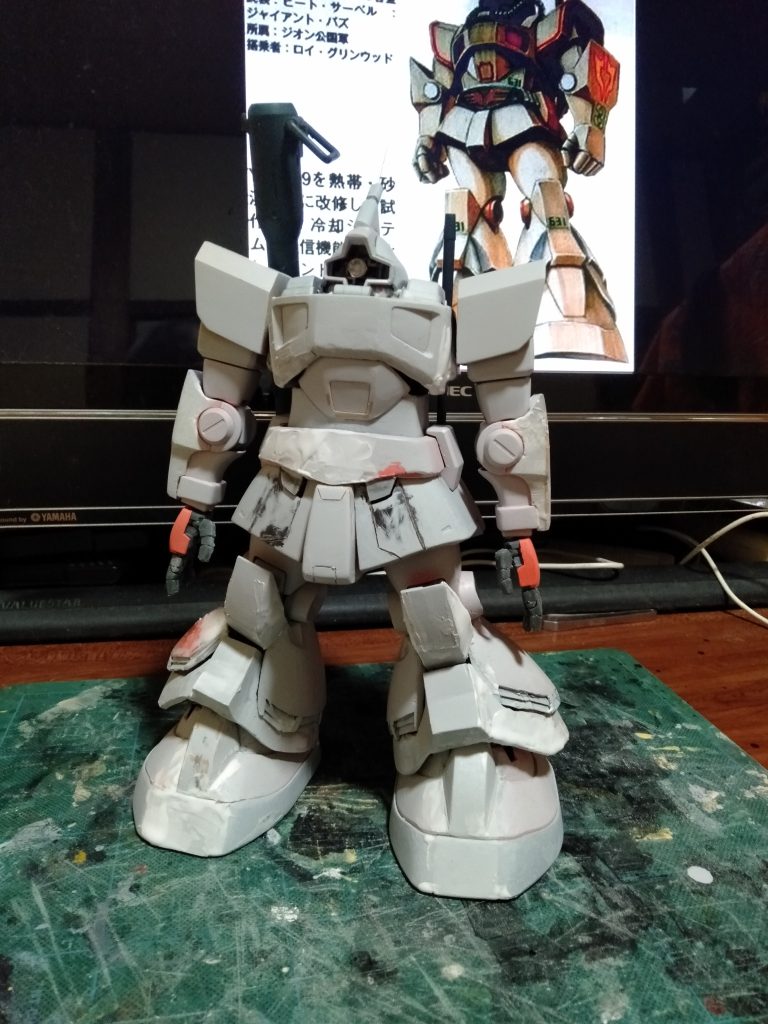 MGリックドム改造トロピカルテストタイプ進行状況です、捨てサフ後の修正をして合間に、武装類を修正してました。このKITはメルカリで素人が言う、素組み完成品(模型人がする仮組の事)(笑)で出品してたのを入手し改造用に保管してた物なので、再仮組をしながら修正してるので「一から仮組した方が楽だろ?」とはプロ並みの製作する先輩方に言われるけど、切り刻んだり改造する時に罪悪感が薄れるので、俺はそうしてます(笑)。いまそういうドムだけであと5体ありますけどねwww、ランドセルですが旧キットってもこれしか現在出て無いんですが(笑)はそのままで使えそうなのでC面処理等をしただけです。パイピングはプラパイプで創り起こしてます、写真にはUPしてませんがオリジナルのショートバズも仕上げました。改めて旧キット(笑)類のバーニアって少しの面取りで、結構現在も使えるようになりますよね?不思議と。 さてそろそろ就寝しますか。