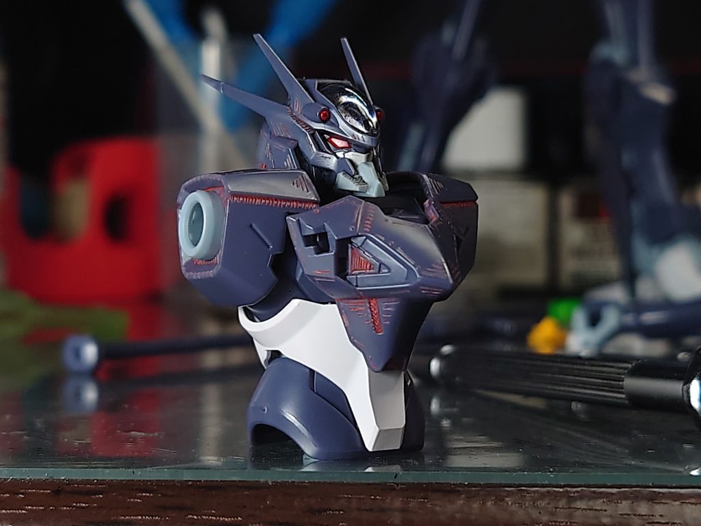 たまに間違える( ̄▽ ̄;) 垂直水平のモールドなら、彫り間違えてもリカバリーがなんとかできますが、斜めのラインを対照に入れるときに、\ / ←が正解なのに、//←左下りに彫ってしまう。今回は胸部下のスリットを、斜めフィンにしようとして間違えましたね。ダメもとでクロスにしてみたら、網目モールドとしてリカバリーできたみたいヽ(´▽`)/