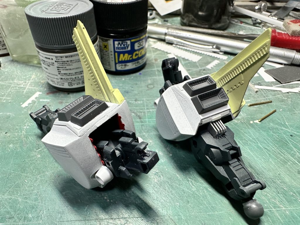 TAK! 2023.08/20更新 23 FA-010-B Full Armor ZZ 112 36 いいねしたモデラー(36) 2 作品を共有 旧キットFA-ZZ進捗。腕も付いて全身像もおおまかに出来たので、各部外装の制作に取り掛かります。まずは元パーツから切り離した、膝周りにある特徴的なスラスター。フレームに合わせて幅増しし、ヌルいモールドは市販パーツに置き換えます。FA-ZZ、脚内側のスラスターだけ素体の部分が露出しているので、内側のみをディテールアップ。大型フィンを付けてトゲトゲ感マシマシに。これで膝の可動域はほとんど無くなりますが、ウチのMSは素立ちの美を追求してポーズ取らせないので無問題です(笑)。 制作中 コメント コメントをして応援しよう コメントにはログインが必要です meg-ocero 2年前 素立ちの美!分かります! TAK! 2年前 コメントありがとうございます! (=´∀`)人(´∀`=) TAK! 雑食系作業遅滞型樹脂工事士(二種) 1/144しか作れないという重い十字架を背負って生きる人。作品に考え抜かれた設定などがあると燃えます。俺設定の改造品大好き。丁寧な工作をしている作品を見ると問答無用でイイね!+1/144モデラー様とアラフィフモデラー様は勝手に同士認定します。フォローリムーブご自由に。 TAK!さんがお薦めする作品 AMX-011 ZAKUⅢ FA-010-B Full Armor ZZ MSM-07s 'Z'GOK MS-09 R(a1) 初期生産型 12 RB-79 (ThunderBolt ver.) 16 FA-010-B Full Armor ZZ FA-010-B FullArmorZZ 15 MS-06R 黒ミ 三連星 世界クロミ化計画の一環として開発されたワンオフMS。黒ミ三連… 15 MSM-07s 'Z'GOK 極東方面軍沿岸第9打撃群所属 MSM-07s”赤手蟹” TAK!さんのページ この作品をお薦め作品に設定する Please login to update your profile! Please login to update your profile! Please login to update your profile! Please login to update your profile!