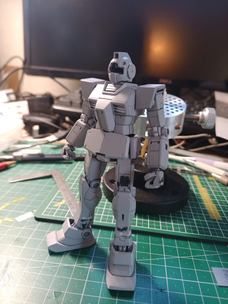 HGUCジムをマスターアーカイブ風に。頭部には磁気スイッチ付…