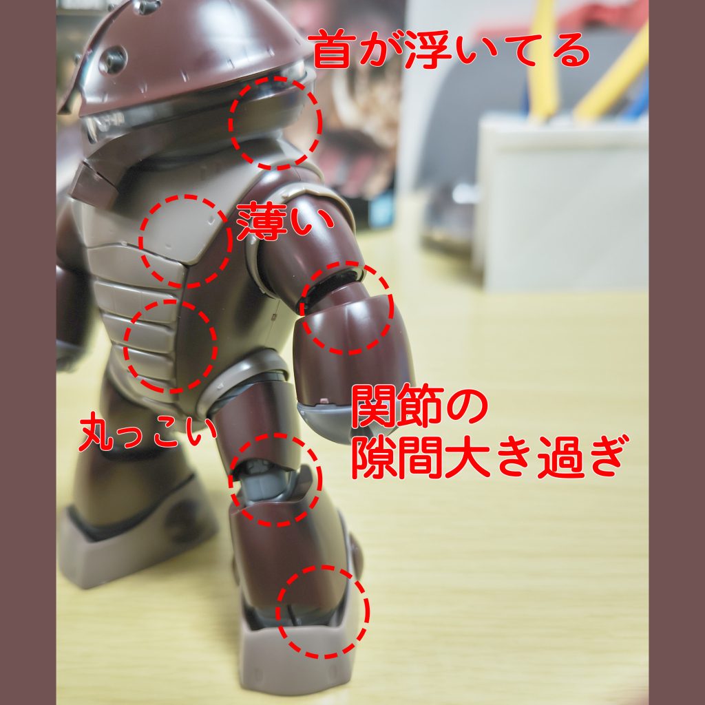 肘、膝、足首の関節の露出が大き過ぎ。可動域確保のためでしょうが、私の場合、自然な立ち姿になればよいので、可動を犠牲にしてでも修正したいです。