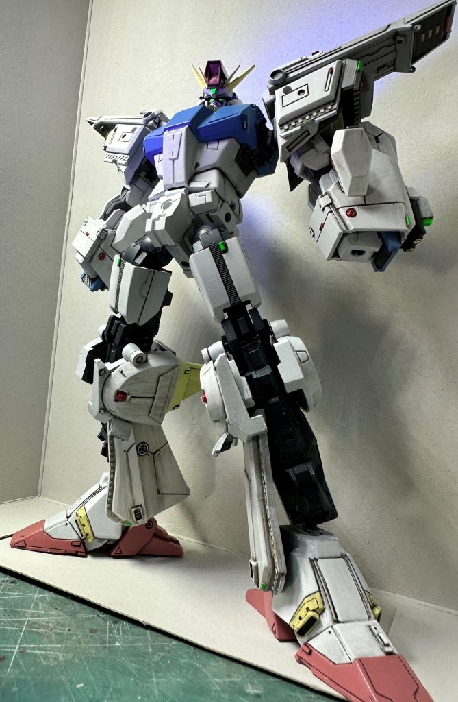 そしてこれまでに制作していた肩部、腕部と合わせボディに接続。まだボディが貧弱ではありますが、煽りのアングルで撮るとなかなかカッコイイですね!と自画自賛w