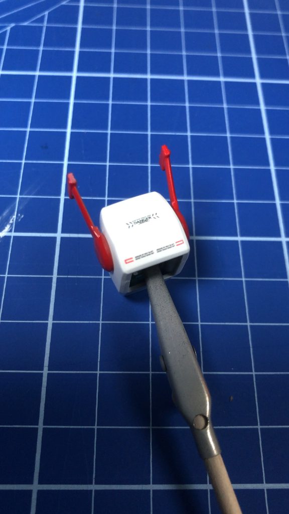 デカールを水に漬ける→貼りたいとこにマークソフター→ピンセットで浮かび上がったデカールを慎重に置く→爪楊枝で微調整、綿棒で水分を少しとるの繰り返し。