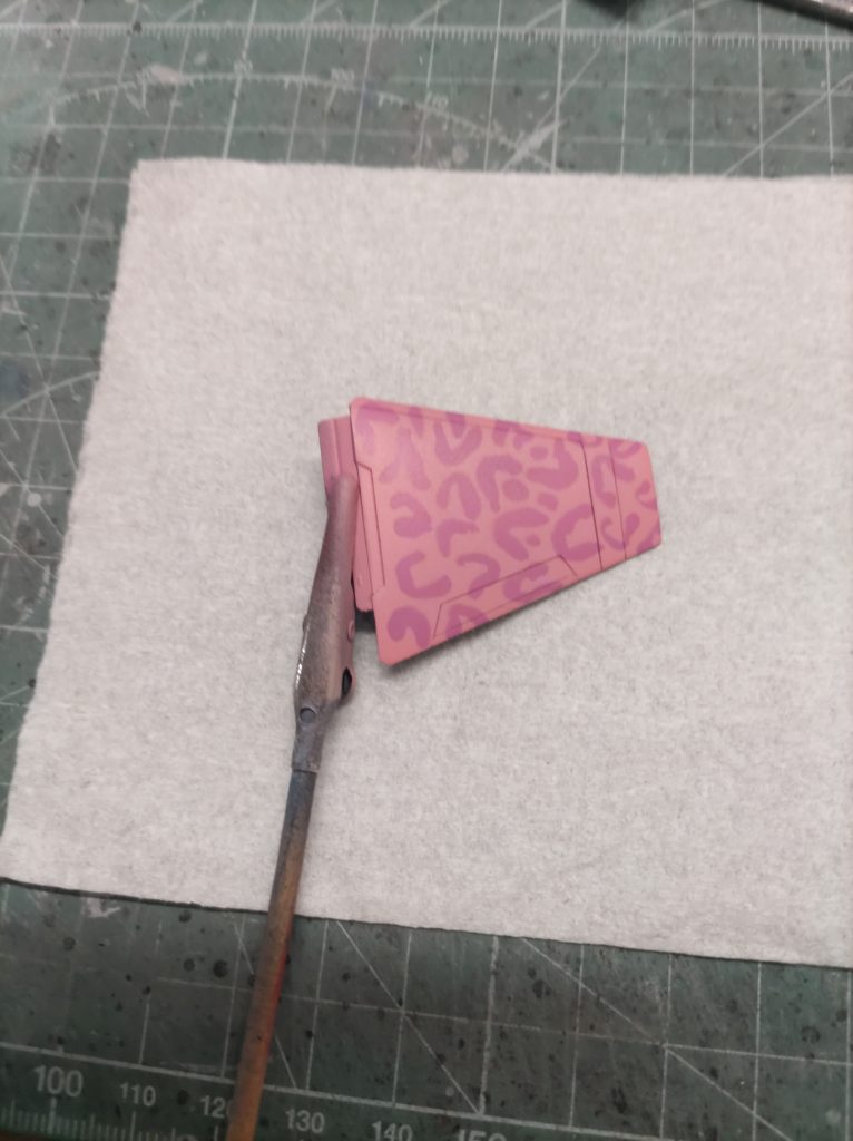 霜降り迷彩(?)、ホントはピンクパンサーに因んでヒョウ柄にしたかったのですが、3色使うとクドくなりそう(今でも十分クドいですが😅)だし、練り消しでパターンを貼り付けてたら、めんどくさくなって断念しました😂