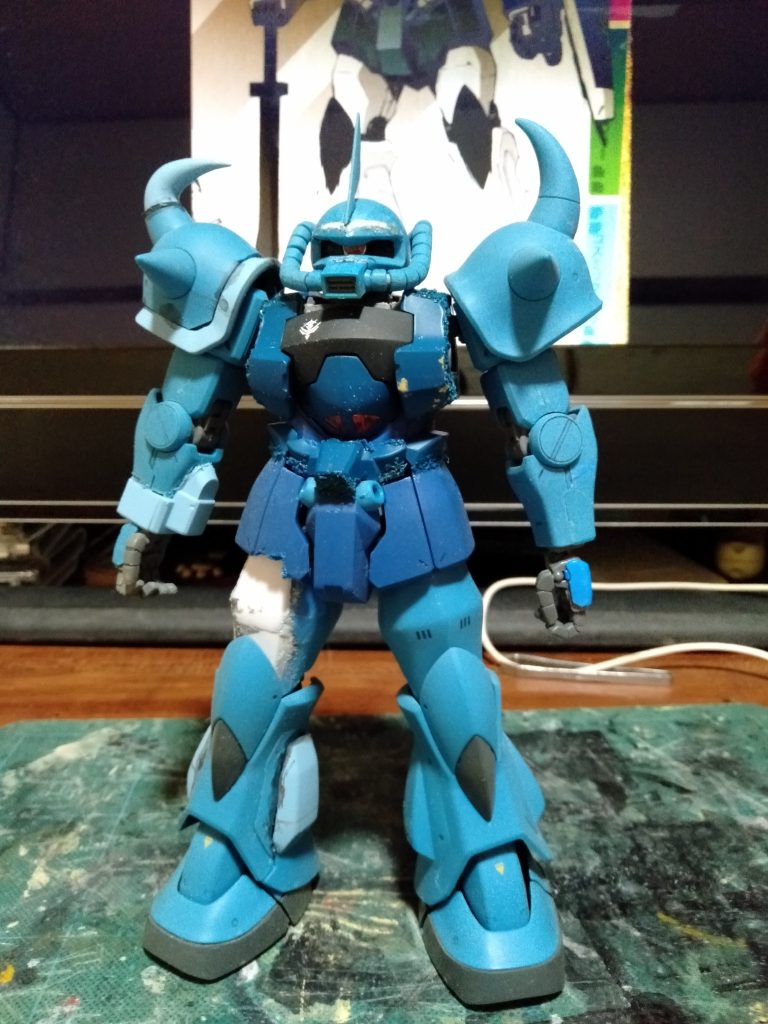 怒りに任せて、先ほどまでっても、もうすぐAM03:30ですが疲れたのでさすがに寝ます。LINEで謝罪が着ていたので読むと、「今日はグフの日やから、かぁ~い!って突っこかれるかと想ったら怒らせてしまいました」と・・・いや、3/9に「ザクの日」って話が出てたら憶えてたけど、前置き無しで非難されたら怒るっしょ?。 さておき、一応こういう風に改造しようという感じで制作してました、半分はそのままにしたので、ほとんどMGグフVer2・0で改造してるのがお分かりいただけるかと思います。 膝関節は両サイド削った後で、プラバンとウェーブの丸一パーツで仕上げる予定です、足回りのふくらみもプラバンで整形します。グフとカスタムのパーツをミキシングして、足りない部分はプラバンで~と思案中 さぁ眠いし(^o^)ノ < おやすみーですね(笑)