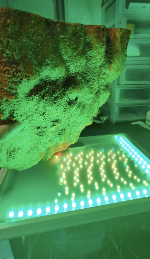 カッターナイフで大まかに削って形をか出したら、100均のかる粘土を全体にペタペタ貼り付けて、丸めたアルミホイルで表面を叩いて岩っぽくして、所々に100均のコンクリートを少し塗ってます。