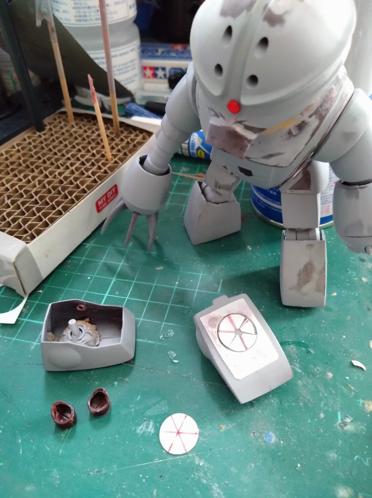 元々のモノアイの整形部分はマグネットシートがちゃんと着くか確認してからヤスリで削ってます。