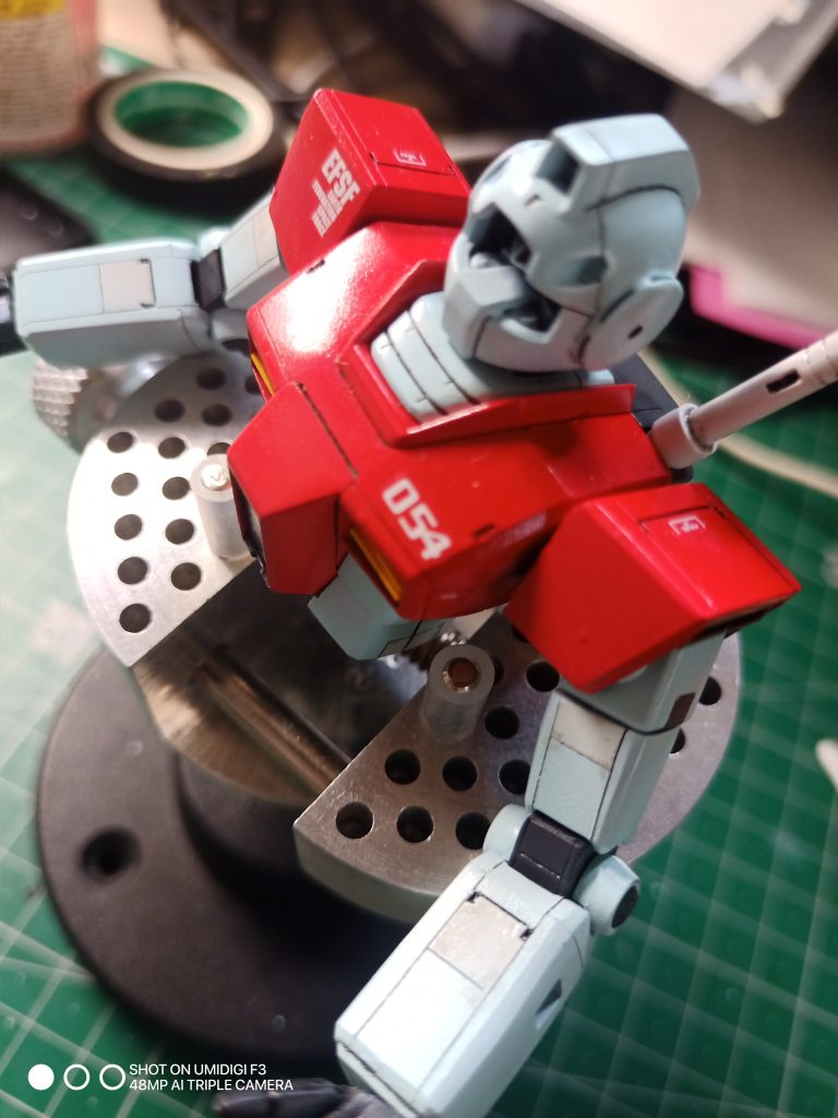 HGUCジムをマスターアーカイブ風に。頭部には磁気スイッチ付…
