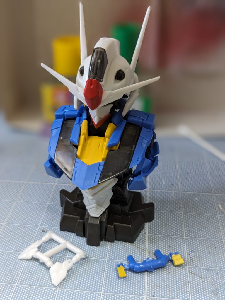 探していたエアリアルのバストアップモデル見つけたので、早速チャレンジ!1回目、カラーバージョン、やった!2回目、クリアーバージョン、むむ…。3回目、内部メカ!!!なんとダブリなしのストレートコンプ!🤣こんなことがあるなんて、今年の強運使い果たした感じです。今制作中のMGが落ち着いたら手を加えるつもりです。しかし、ABS製なのが何とも…