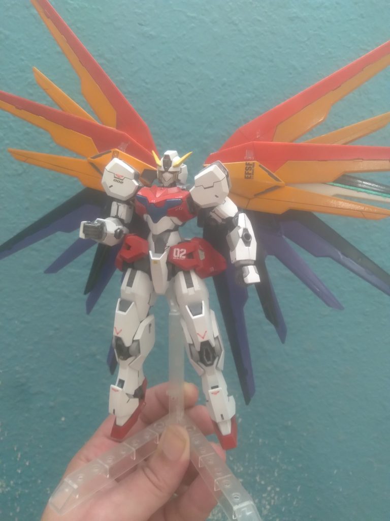 Custom Gundam Leander with Helios’ backpack and the wing shields equipped. If they were the same color, it would look a lot better, I believe