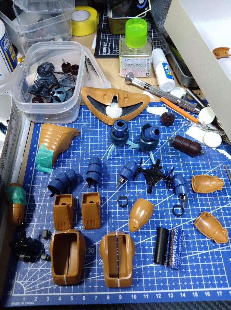 今日は腕や足をどうするか使えそうなパーツを広げて色々組み合わせてました。