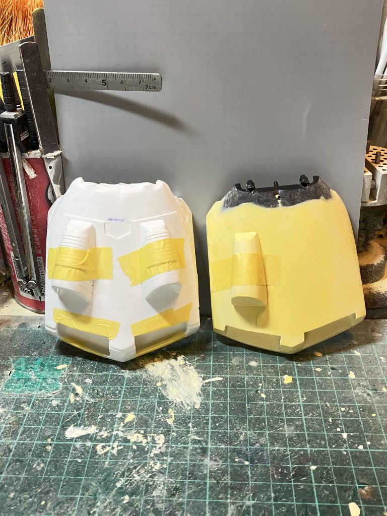 小さいスラスターはまだ良かったんですが、縦横100✖️100に加えて高さもあるリアスカートは難しくて、特に表側の凹んでいる所が吸い切れず、仕方なくカットして作り直しな感じです