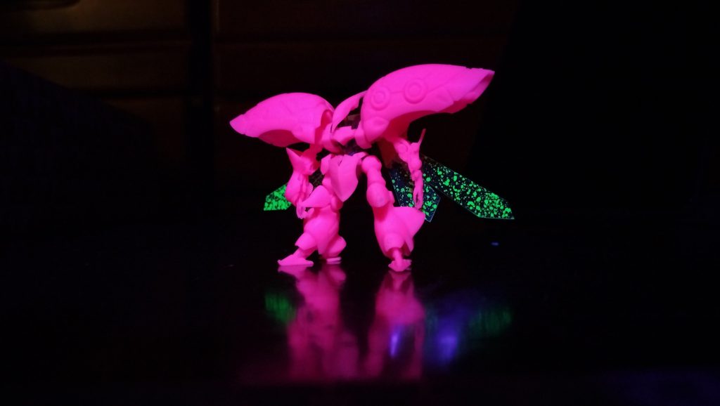 ●最近ビームサーベルとかもですが、クリアタイプに薄く蛍光塗って、撮影のときにそこは焦点外して撮ると、ブラックライトの当て方で塗装よりもホントのビームっぽく撮れたりするんで、そっち方面の可能性を遊びながら見つけてます。