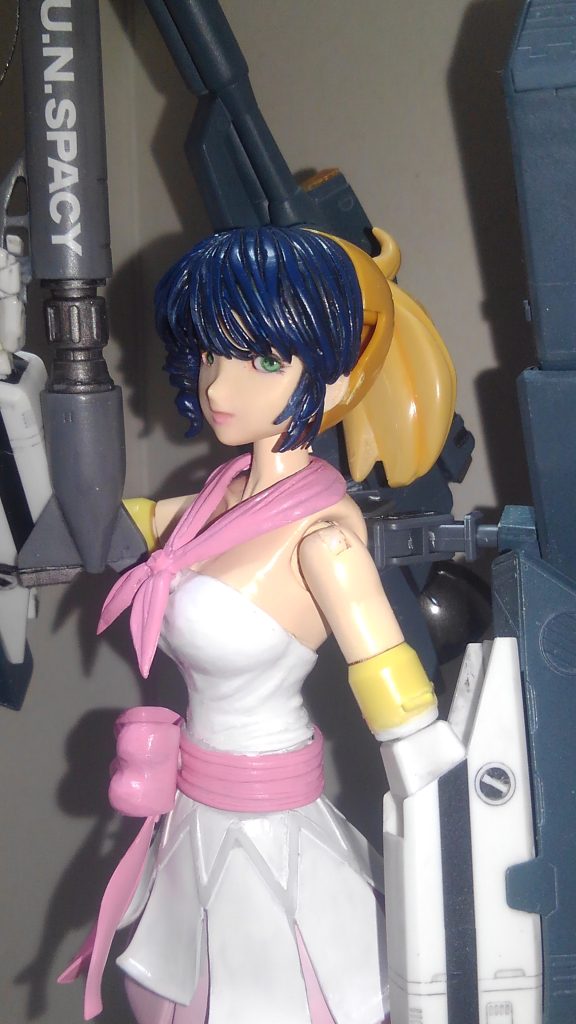 作成中のミンメイをよりミンメイらしくする作業に終わりが見えず、ちょっと疲れたので時間を置くことも兼ねて、次の段階へ進みます。ハセガワさんのVF-1ストライクガウォークバルキリーのパーツを付けて、バンダイの35年前の古のキット、アーマードレディシリーズのバルキリーレディにしてみました。