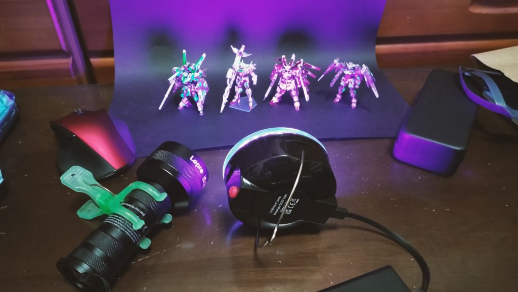 アーティファクトのような極小ガンプラの電飾には欠かせない蛍光塗料+ブラックライト。