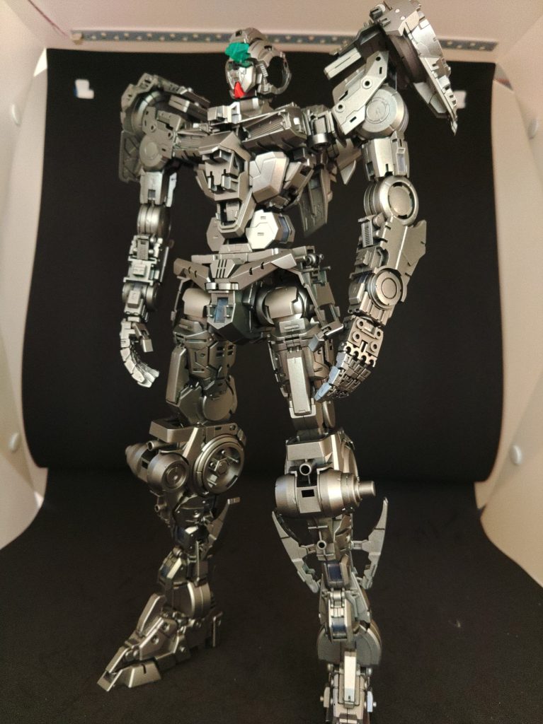 割と不評なクリック関節ですが、ポージングが思うようにできないのでかみ合わせ部分を削り、ラチェット関節のような感触になるまで緩くしています。これによってコンデンサ部を押し込まなくても関節の曲げ伸ばしができるようになりました。ただし、武装保持の観点からカチカチ音が鳴る程度の負荷は維持させています。